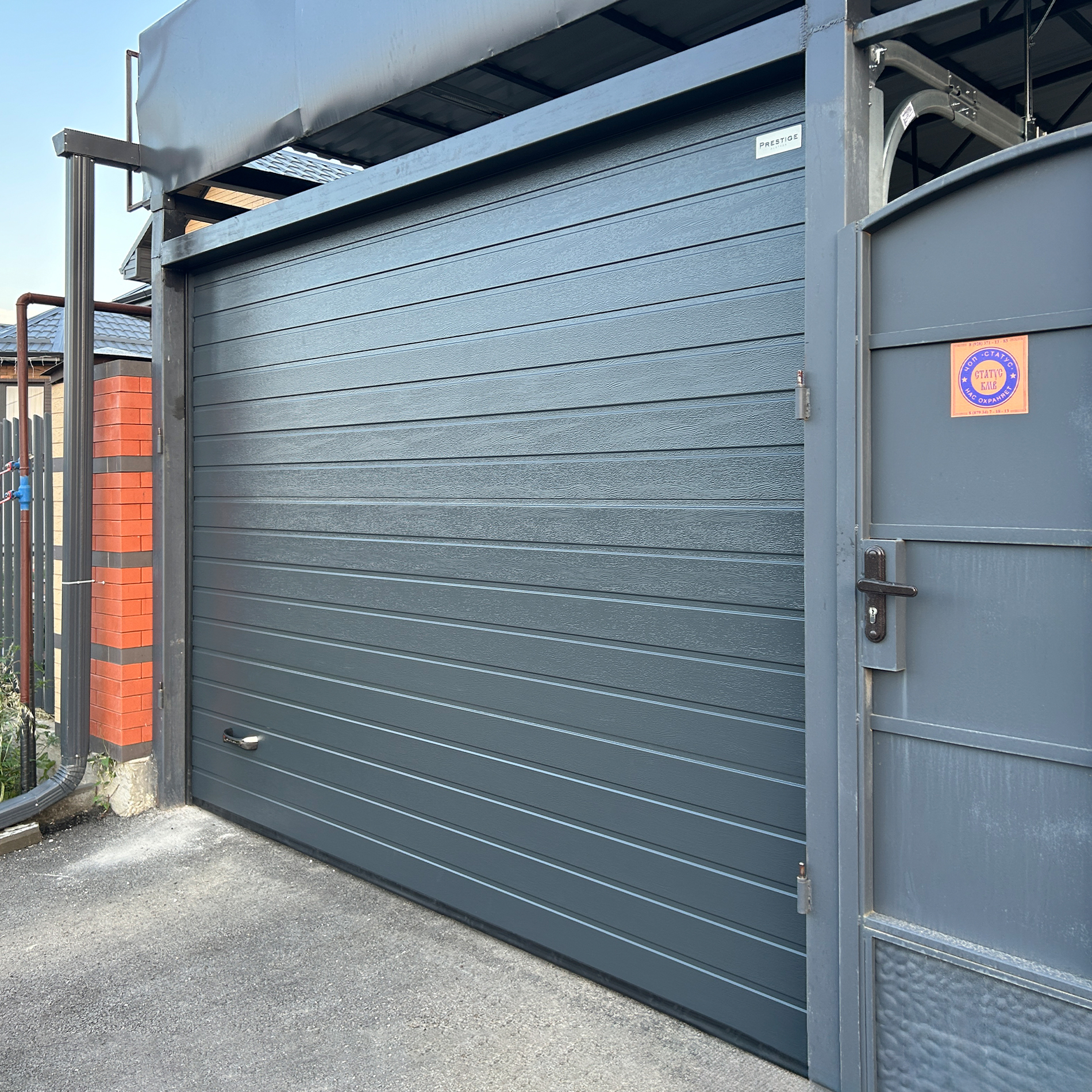 Заказали секционные ворота в компании "Главные Ворота". Ворота установили очень быстро. Работают они практически бесшумно, нам очень нравится и цвет совпал!